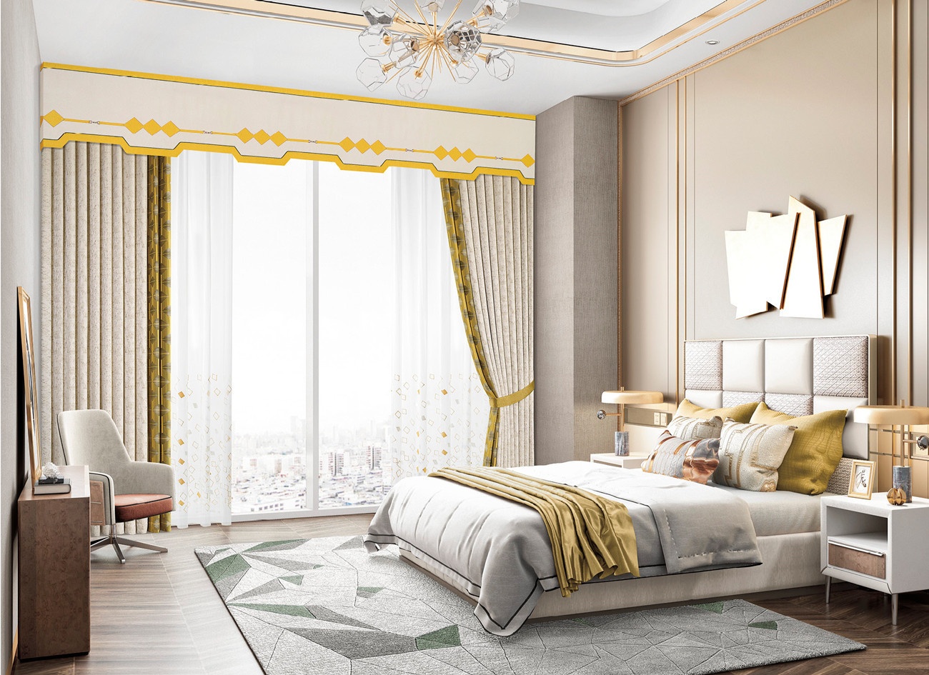 古金色,有著陽光般的溫暖,綻放于面料或復古或現代,賦予空間溫度