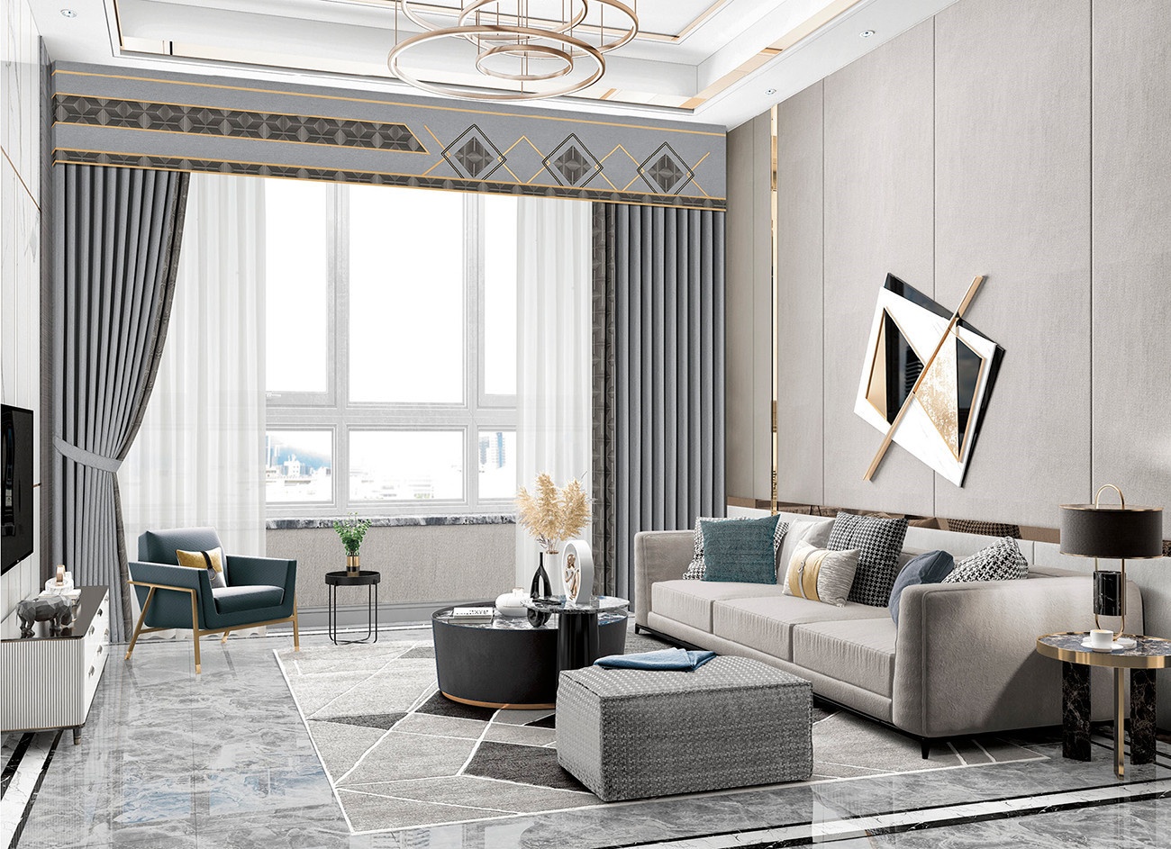 汲取銀河的色彩靈感,搭配現(xiàn)代幾何線條,用于窗簾,兼具典雅與時(shí)尚。