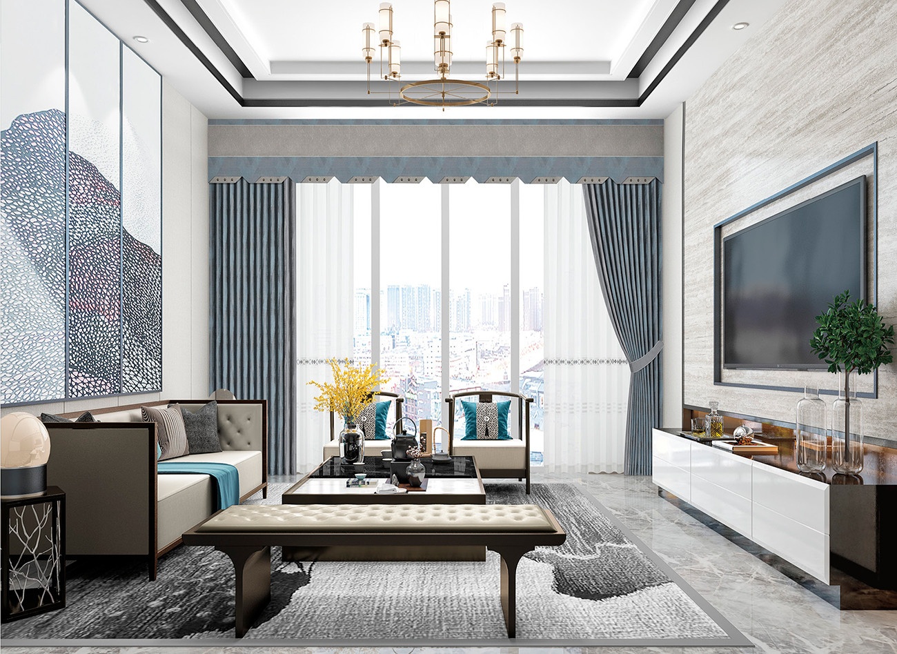 在灰藍色溫柔基調的掌控下,簡約中釋放無限力量盡顯自由的現代主義美學