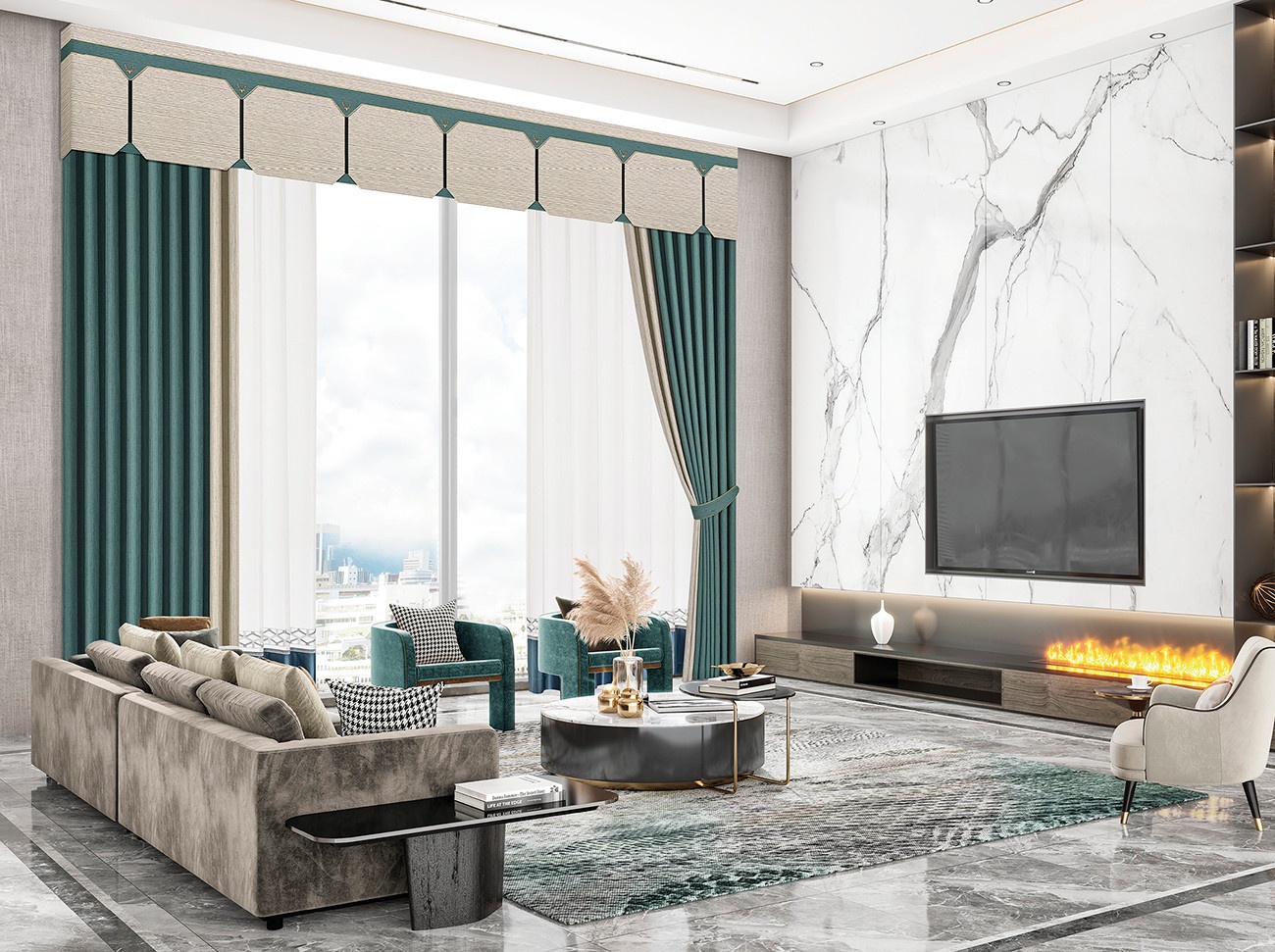 低調(diào)純凈的藍綠色如同靜待時光召喚的夢境叢林,與米灰色流暢自然的過渡渲染出時尚而清新的視覺享受。簡約而優(yōu)美的方形依次排列,強勢而規(guī)律的美感折射著內(nèi)涵豐富的動人魅力,精致的金色鹿頭裝飾,讓貴族氣質(zhì)彰顯無疑。